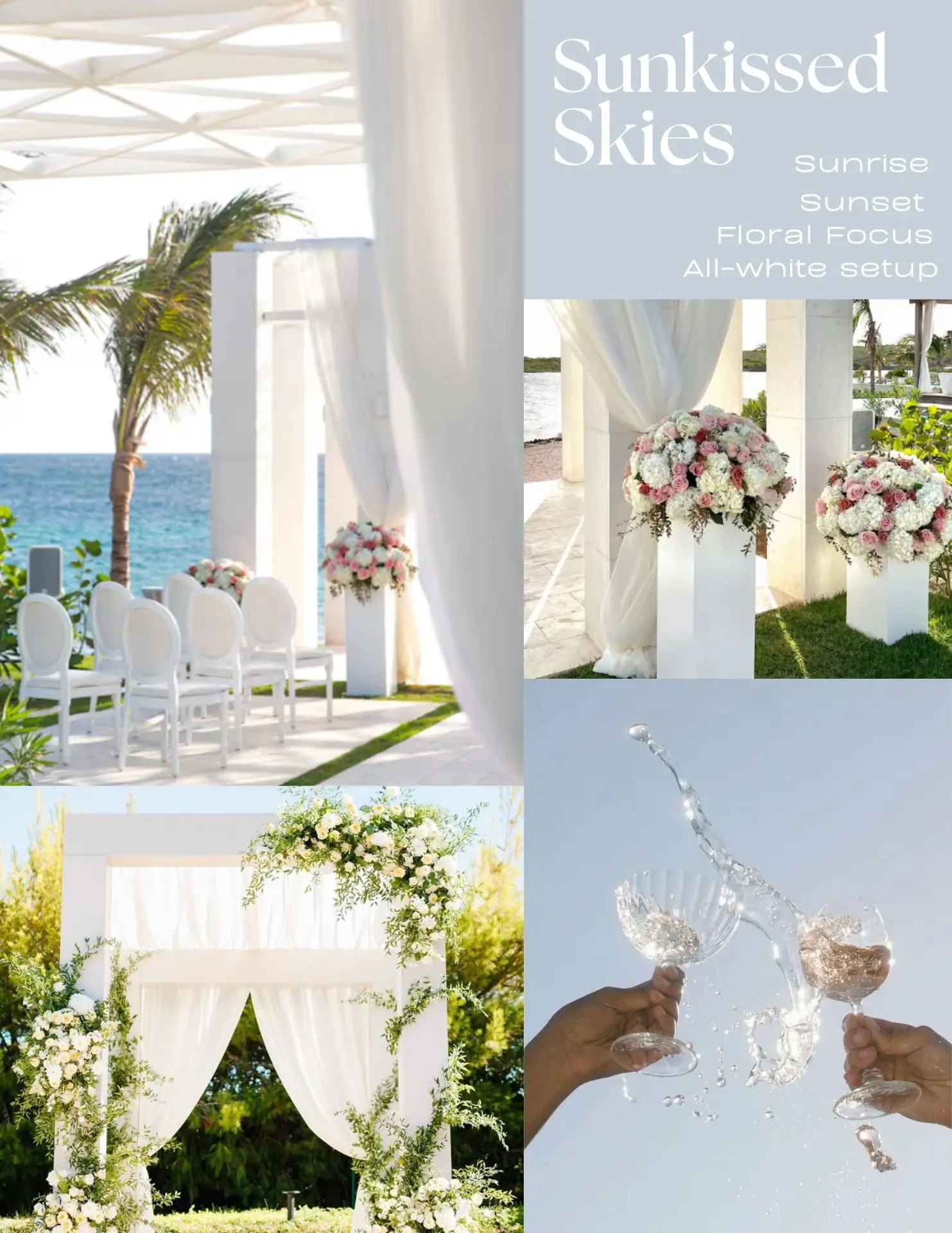 Some couples want a classic beach ceremony with simple décor and natural surroundings, while others prefer a more styled experience with curated colors, florals, and design elements.